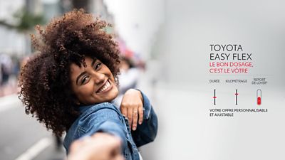 Optez pour Toyota Easy Flex, la solution de mobilité qui s’adapte à votre vie. Disponible sur Aygo X, Yaris Cross, Toyota C-HR, Prius Hybride Rechargeable, RAV4 Hybride et Toyota bZ4X.