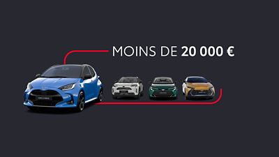 Plusieurs modèles de voitures d’occasion à moins de 20 000 euros sont proposés par Toyota Occasions, comme la Toyota Aygo (Opens in new window) et Aygo X, le SUV Toyota C-HR (Opens in new window) ou encore la Toyota Yaris (Opens in new window). Ces véhicules sont appréciés tant pour leur rapport qualité-prix que pour leurs technologies embarquées et leur faible consommation de carburant.
