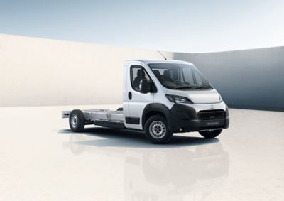 Châssis Simple CabineDisponible en diverses motorisations Diesel et en version électrique, et en plusieurs longueurs. Le PROACE MAX Châssis est disponible en version Simple Cabine 3 places.
