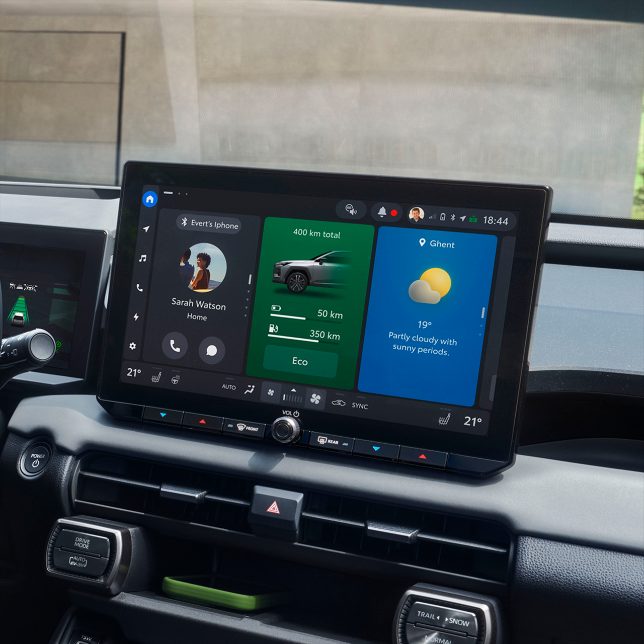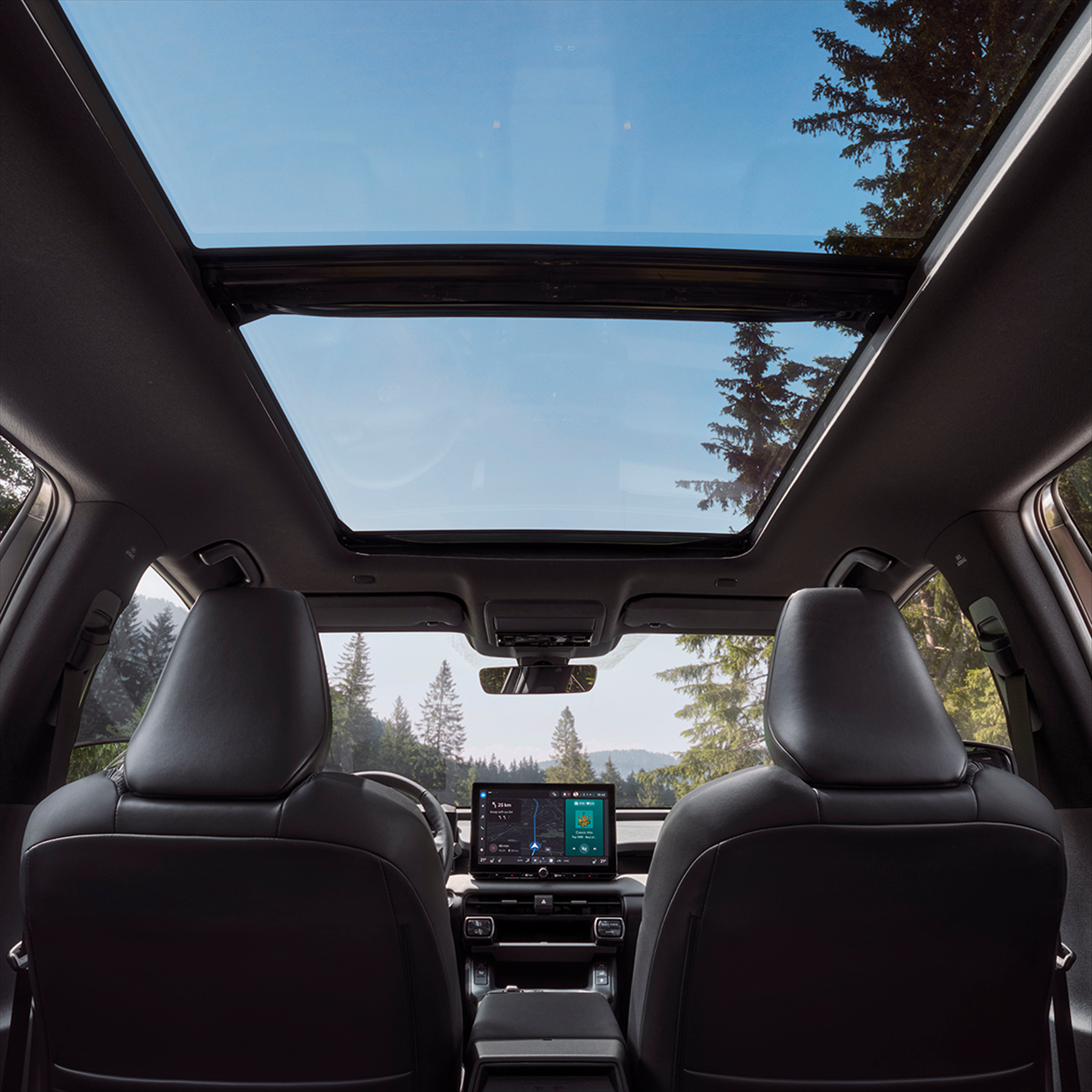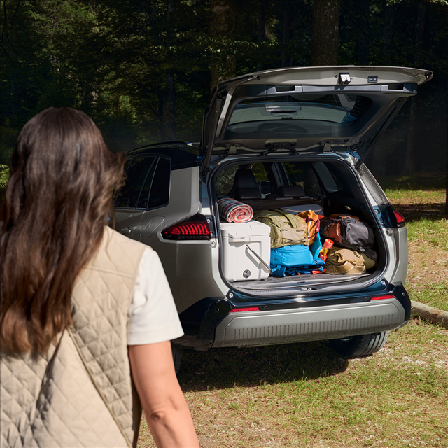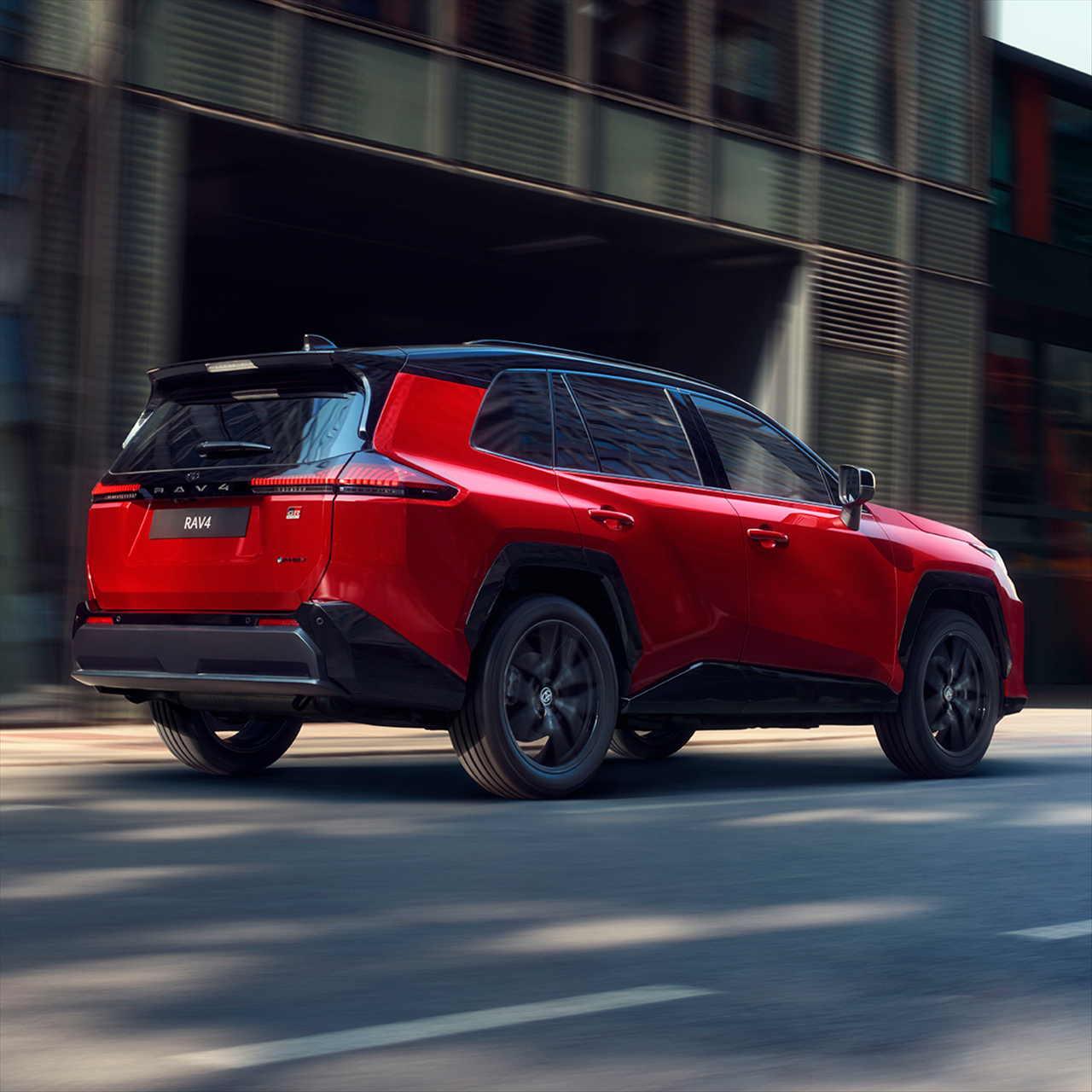 Gamme RAV4 Hybride : Consommations* (L/100 km) et émission de CO2* (g/km) en conditions mixtes selon norme WLTP : de 5,6 à 5,9 et de 126 à 134.